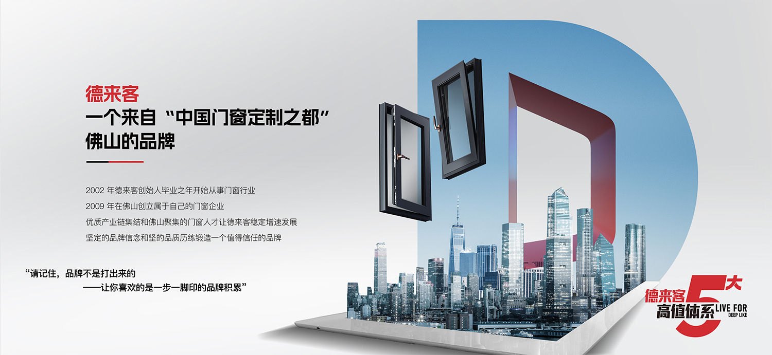 佛山市惠藍(lán)門(mén)窗科技有限公司成立于2009年,總部位于中國(guó)門(mén)窗之都——廣東佛山,旗下?lián)碛小暗聛?lái)客”門(mén)窗品牌。勵(lì)精圖治十?dāng)?shù)載,德來(lái)客門(mén)窗現(xiàn)今已成為集設(shè)計(jì)、研發(fā)、生產(chǎn)、銷(xiāo)售、服務(wù)于一體的現(xiàn)代化高新技術(shù)企業(yè)。